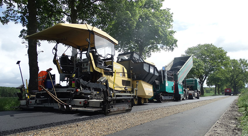 Als Dienstleister für kurzfristige Unterstützung bei Schadensbildungen im Asphalt kümmern wir uns um die schnelle Wiederherstellung Ihrer Verkehrswege / Banketten (Seitenräume). Aus unserem umfangreichen Baumaschinen-Portfolio stehen uns verschiedenste Asphaltfertiger mit Einbaubreiten von 1,20 m bis über 8 m zur Verfügung. Die zur Verfügung stehenden Asphaltfräsen werden auch kurzfristig für Sie zum Einsatz gebracht. Das gewonnene Asphaltgranulat wird direkt mit eigenen Sattelzügen zur Mischanlage transportiert und dem Recyclingprozess zugeführt.