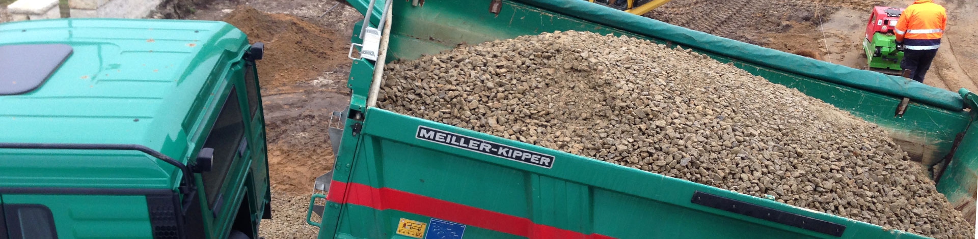 Ob Füllsand, Frostschutzmaterial, Schottertrageschichtmaterial, Asphaltmischgut oder auch Entwässerungsrohre und Betonprodukte – effizienter Straßenbau gelingt nur, wenn eine fortlaufende Versorgung der Baustelle sichergestellt werden kann. Jeder Meter braucht schließlich neues Material, für eine großflächige Lagerung fehlt oft der Platz und so müssen Materiallieferungen in einem exakten Zeitfenster ihren Bestimmungsort erreichen. Dank unseres Fuhrparks sind wir unabhängig und können jede Lieferung genau und kosteneffizient planen. Das freut uns und das freut vor allem unsere Kunden, die sich auf eine schnelle, sichere und kalkulierbare Umsetzung verlassen können.